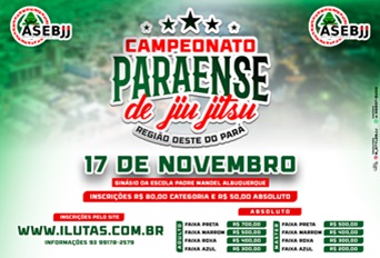 Temos a honra de convidar os atletas de jiu-jítsu para participar do Campeonato Tapajós de Jiu-Jitsu, que será realizado em 17 de Novembro na cidade de Santarém/Pará tendo como o objetivo principal a incentivar nossas crianças, jovens, adultos e master a participar de competições .